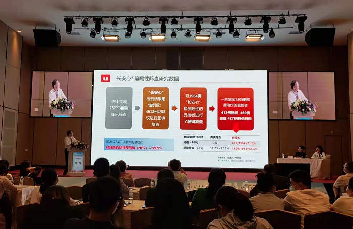广东省人民医院协和医疗中心主任、广东省医院协会医院健康管理专委会主任委员陈炼以《中国癌症早筛的机遇与挑战》为题作主题演讲时,重点介绍了粪便SDC2基因甲基化PCR检测对结直肠癌早期诊断的效果。